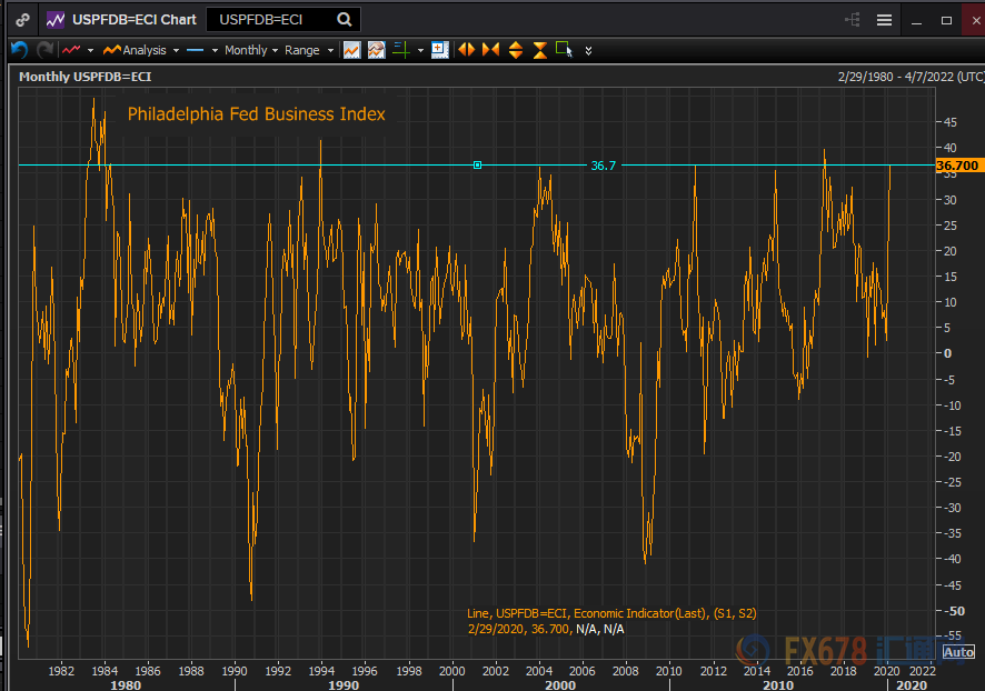 而2月20日公布的费城联储制造业PMI飙升至36.7,远高于市场普遍预期的12和1月份的17。这是该指标自2017年2月以来的最高水平,也是27年来的第二高水平。