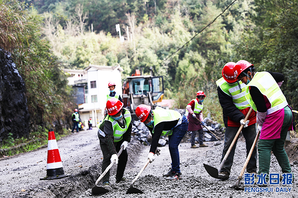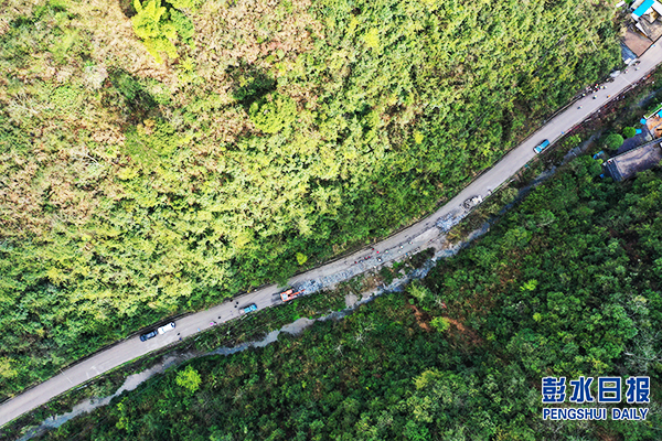 彭水省道S522梅子垭镇至桑柘镇路面改造工程现场。